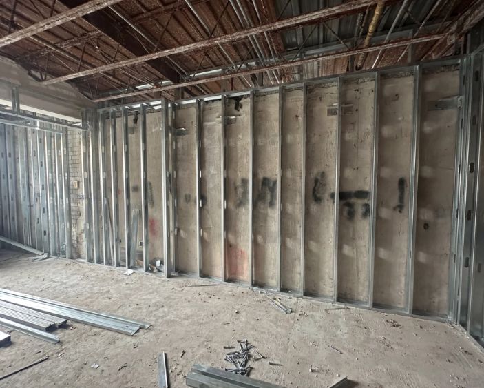 Concrete repairs and new pours, steel/wood framing, structural openings, insulation (batt), drywall & taping, painting, flooring, doors/windows, exterior sealing and caulking — coordinated to reduce downtime and handoff issues.